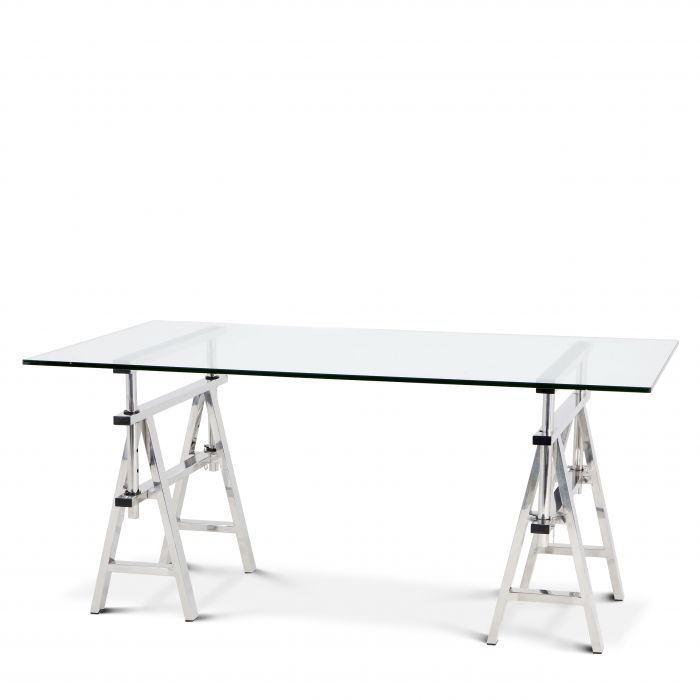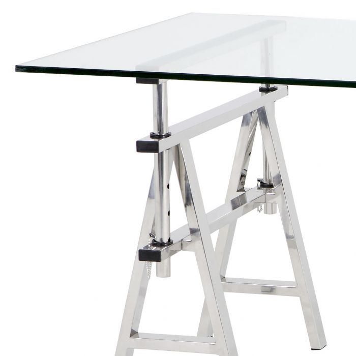 Elegantly anchor your lounge or study with the Shaker Desk. This sturdy furniture piece comprises a polished stainless steel frame and a durable clear glass tabletop.