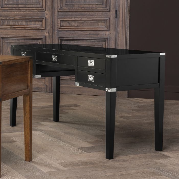 Keep your study or home office both stylish and tidy with the St. Andrew Desk. The contemporary design of this beautiful black writer desk with nickel hardware will complete your workspace. With its cabinet and drawers it offers a huge amount of practical storage.