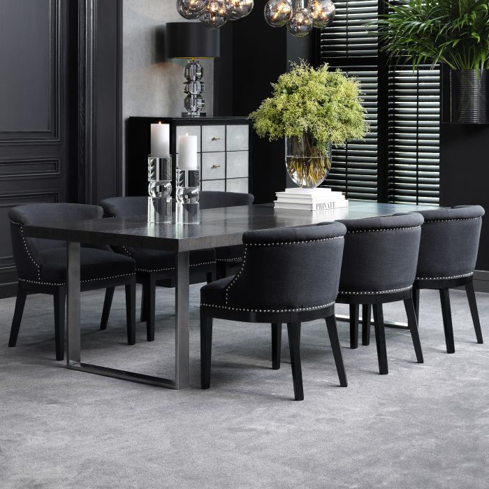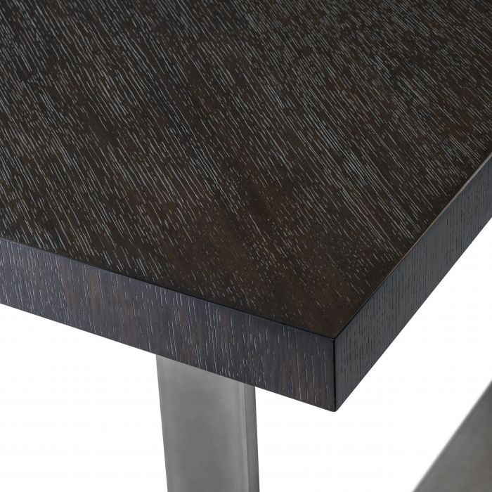 Bring a touch of industrial design to your home with the sturdy Borghese Dining Table. Featuring the clean lines of Bauhaus furniture, this modern table comprises of a metal frame with black nickel finish and a charcoal oak veneer tabletop.