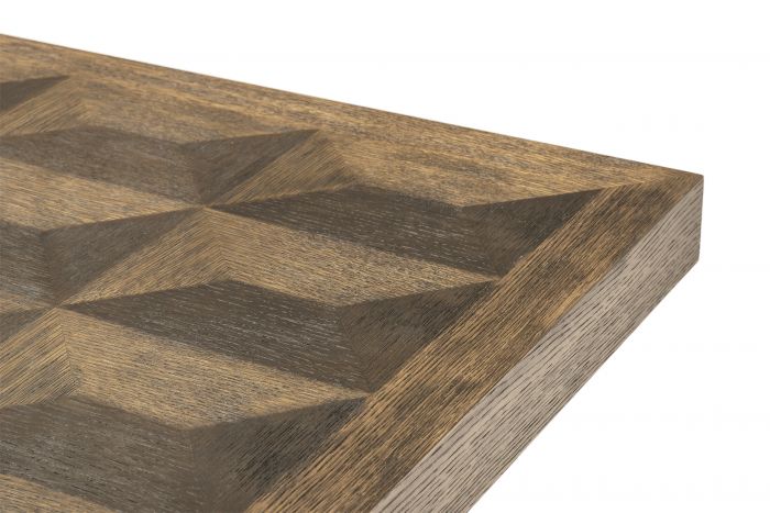 With its beautiful marquetry, the Gregorio Dining Table will give your home décor timeless appeal. The inlaid tabletop features a beautiful geometric pattern that creates a 3D optical illusion. Since the soft and natural tones of the oak veneer go well with all colours, this sturdy furniture piece matches every interior scheme.