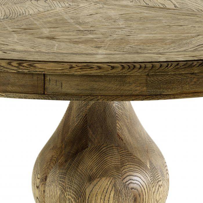 Anchor your dining room ensemble in classic style with the Leeds Dining Table. Crafted from smoked oak, this gorgeous round dining table features a parquette tabletop and a pedestal base with a curved silhouette and turned details. A neutral finish gives it a warm look, allowing it to fit in most colour schemes.