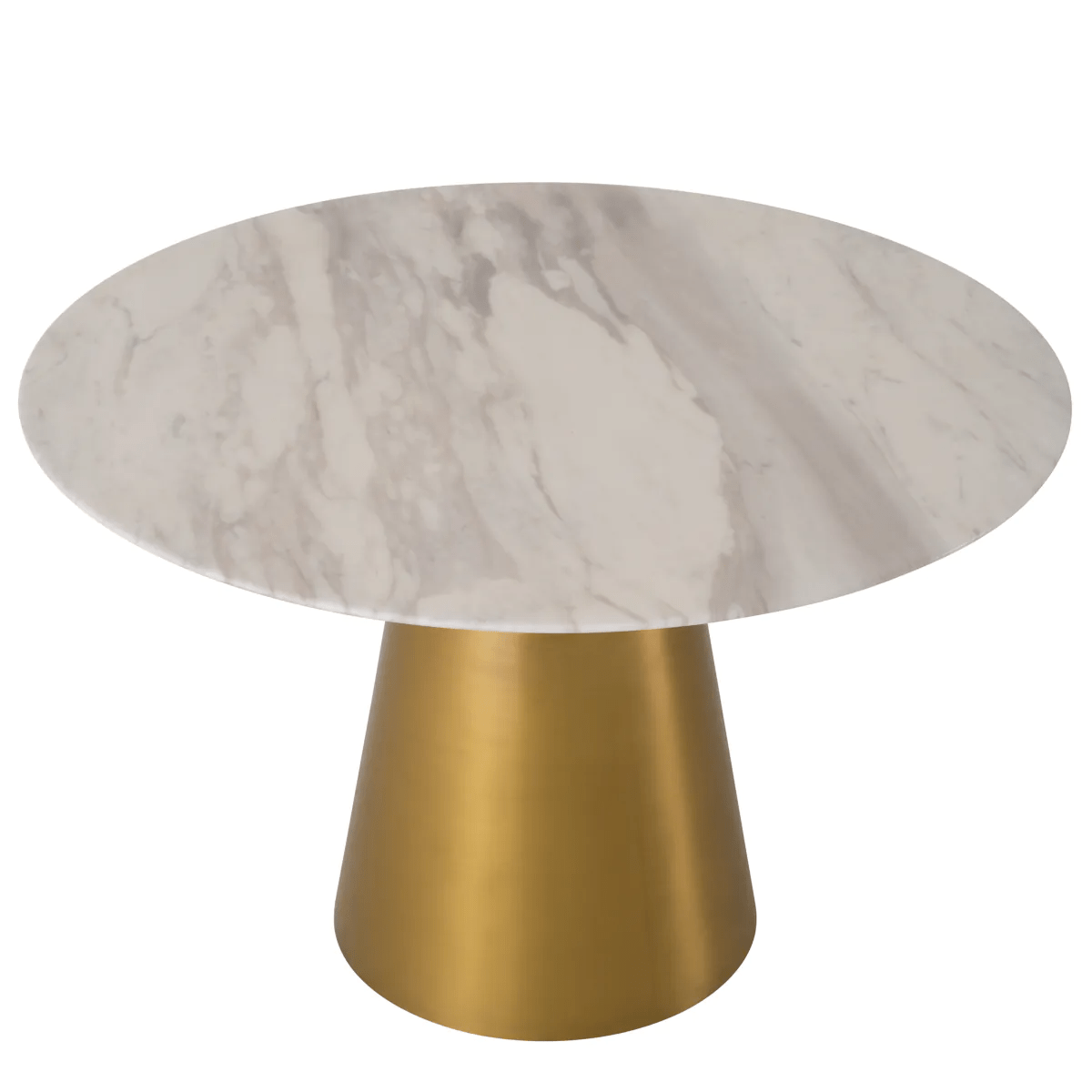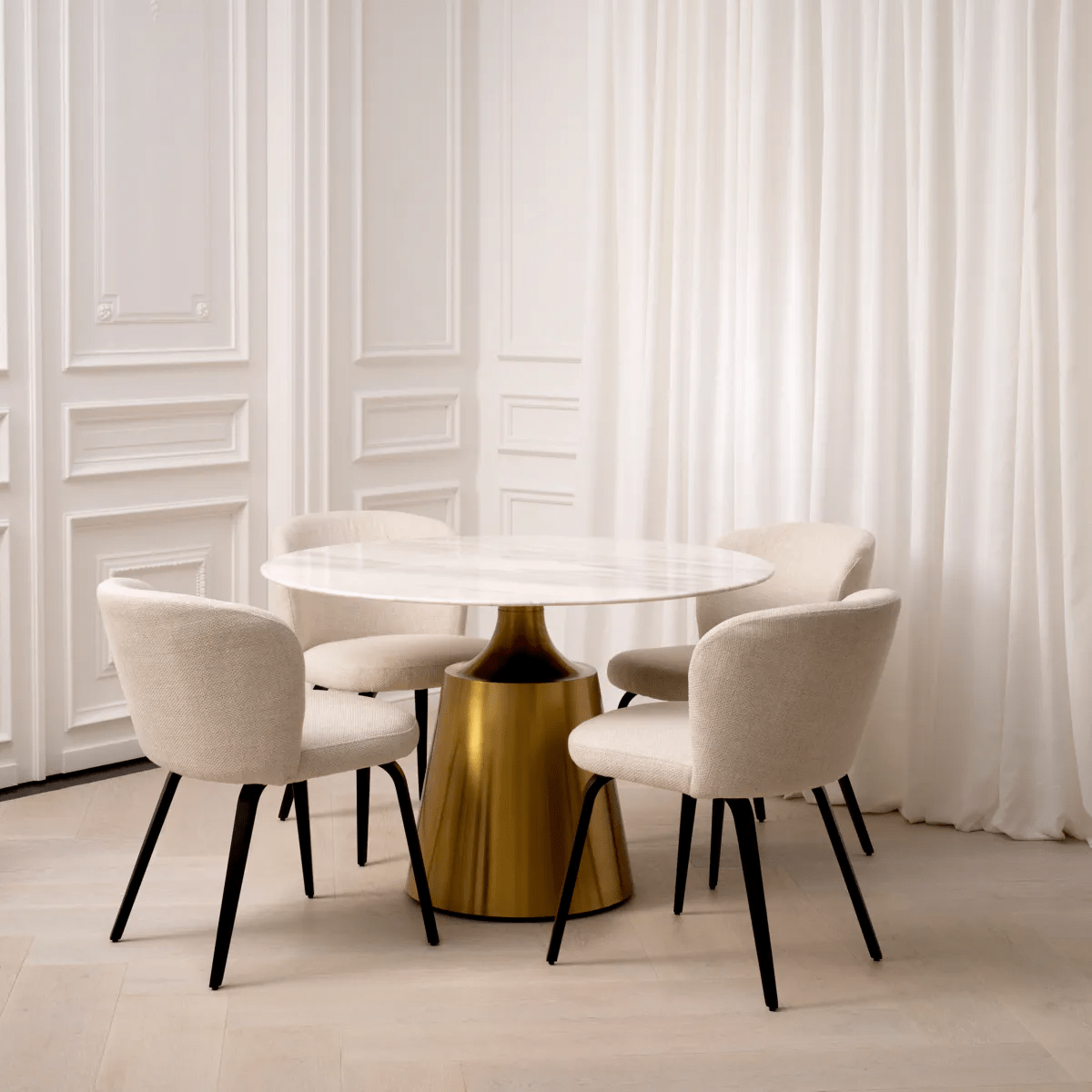 With its round marble top of white marble and tapered brass base, Dining Table Nathan encapsulates the essence of a contemporary design. Simple, elegant lines allow the noble material to take the spotlight. Decorate your home with this elegant piece for an undeniably distinguished look.