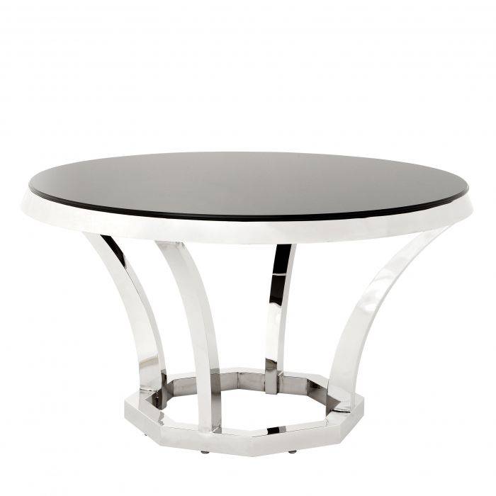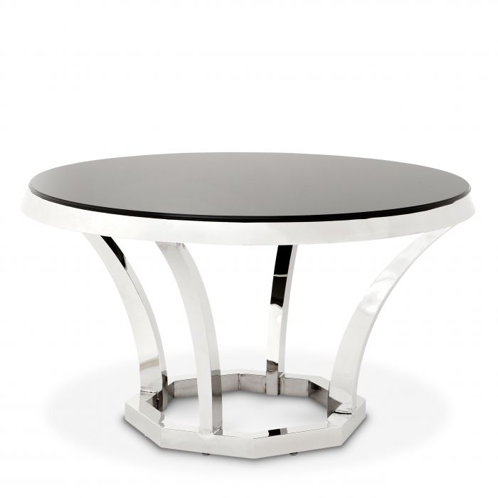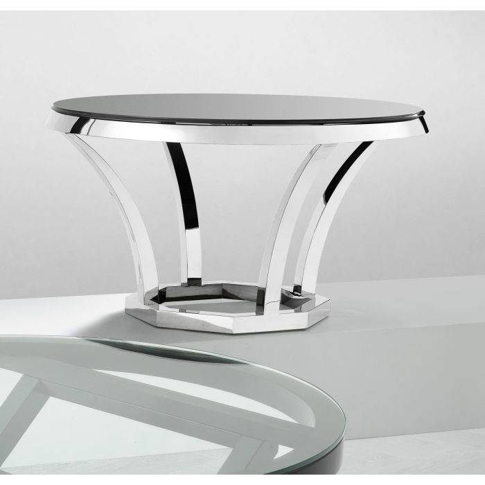 Invite the striking serenity and metallic modernity of the luxury Valentino Dining Table into your home. Combining a highly polished stainless steel base with a smooth glass tabletop, it is perfect for contemporary interiors.