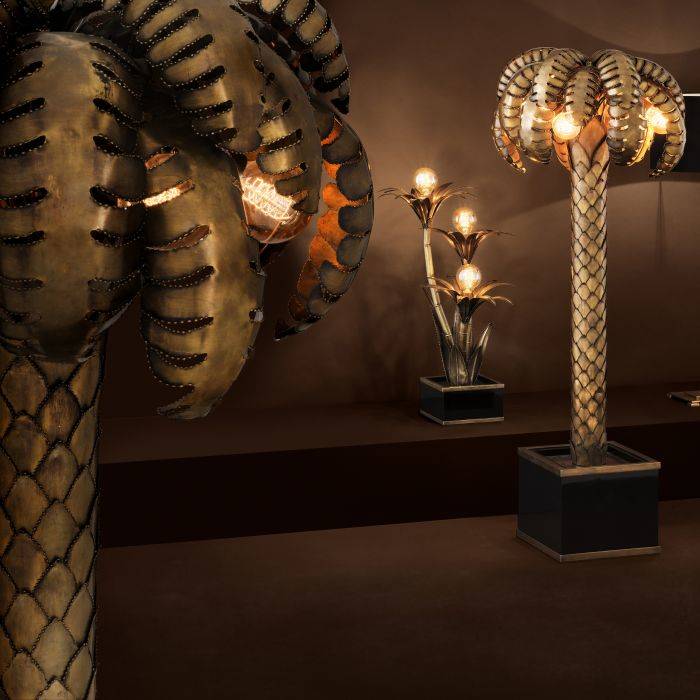 If you love the botanical jungle trend, the Palm Tree Floor Lamp is a must have for you! With its glamorous vintage brass finish, intricate detailing and black base in the shape of a planter, this arborous beauty will grant tropical opulence to your interior.