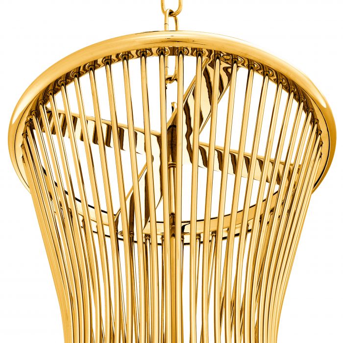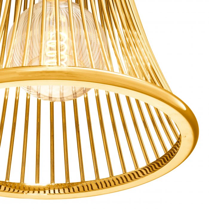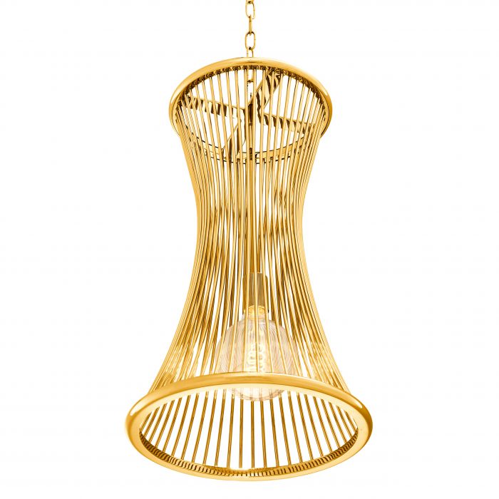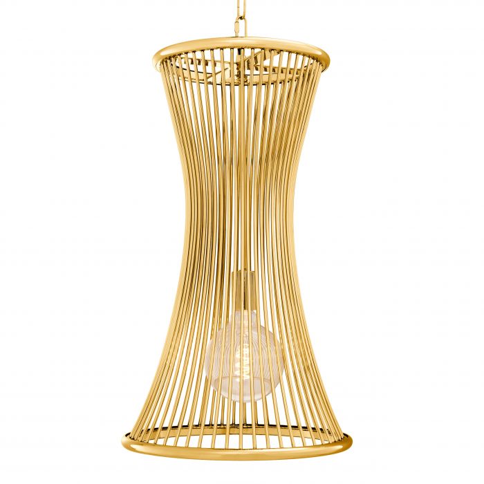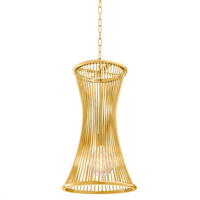 Add a hint of artistic flair to your home décor with the Altura Hanging Lamp. Its slender bowed drum shade with a wire structure in gold finish gives a nice view of the light bulb inside. A great feature light over a dining table, especially when grouped together.