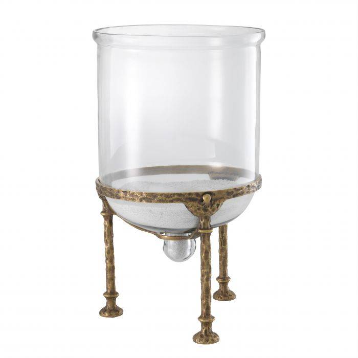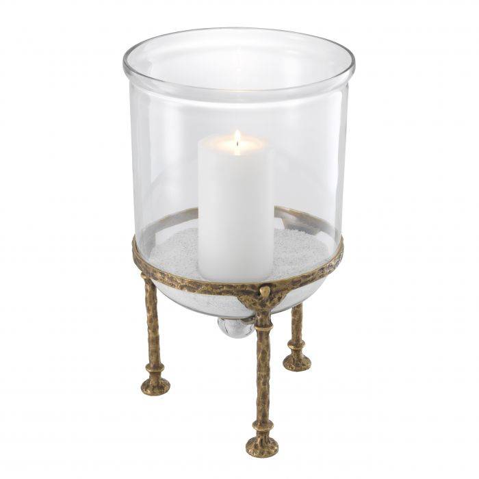 Add a warm and cosy feel to your home with the Grace Hurricane. Beautifully wrought legs lend a traditional touch to this elegant candle holder with clear glass bell jar. The vintage brass finish features simulated marks of age and wear, giving this decorative item extra charm.