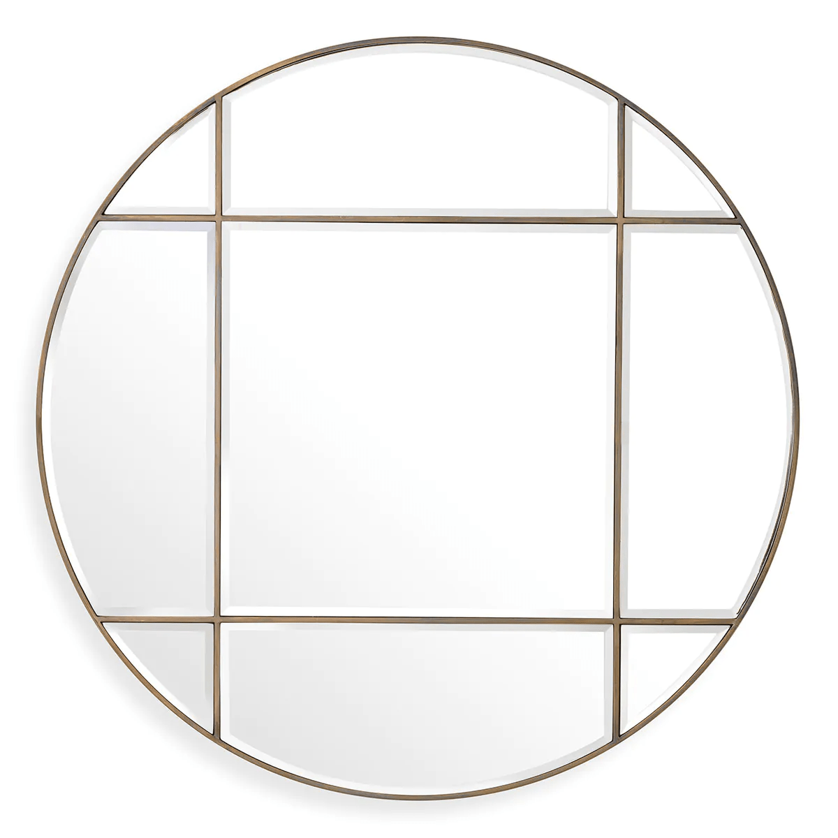 Set to embellish your interior, the round Mirror Beaumont features a sleek metal frame in a vintage brass finish that adds a flair of glam to any room. Its panelled design segments the bevelled mirror glass, breaking up the reflective plane and enhancing the traditional look.