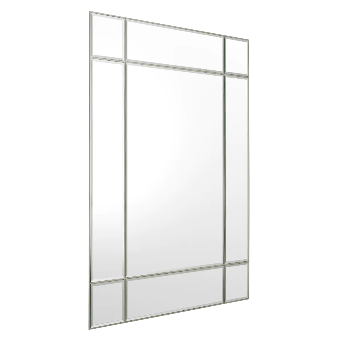 Featuring a nickel finish frame and bevelled mirror glass, this extra large rectangular wall mirror is perfect if you are looking for a restrained yet glamorous look.