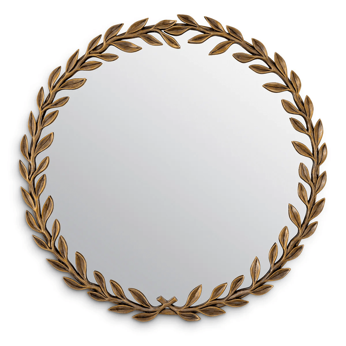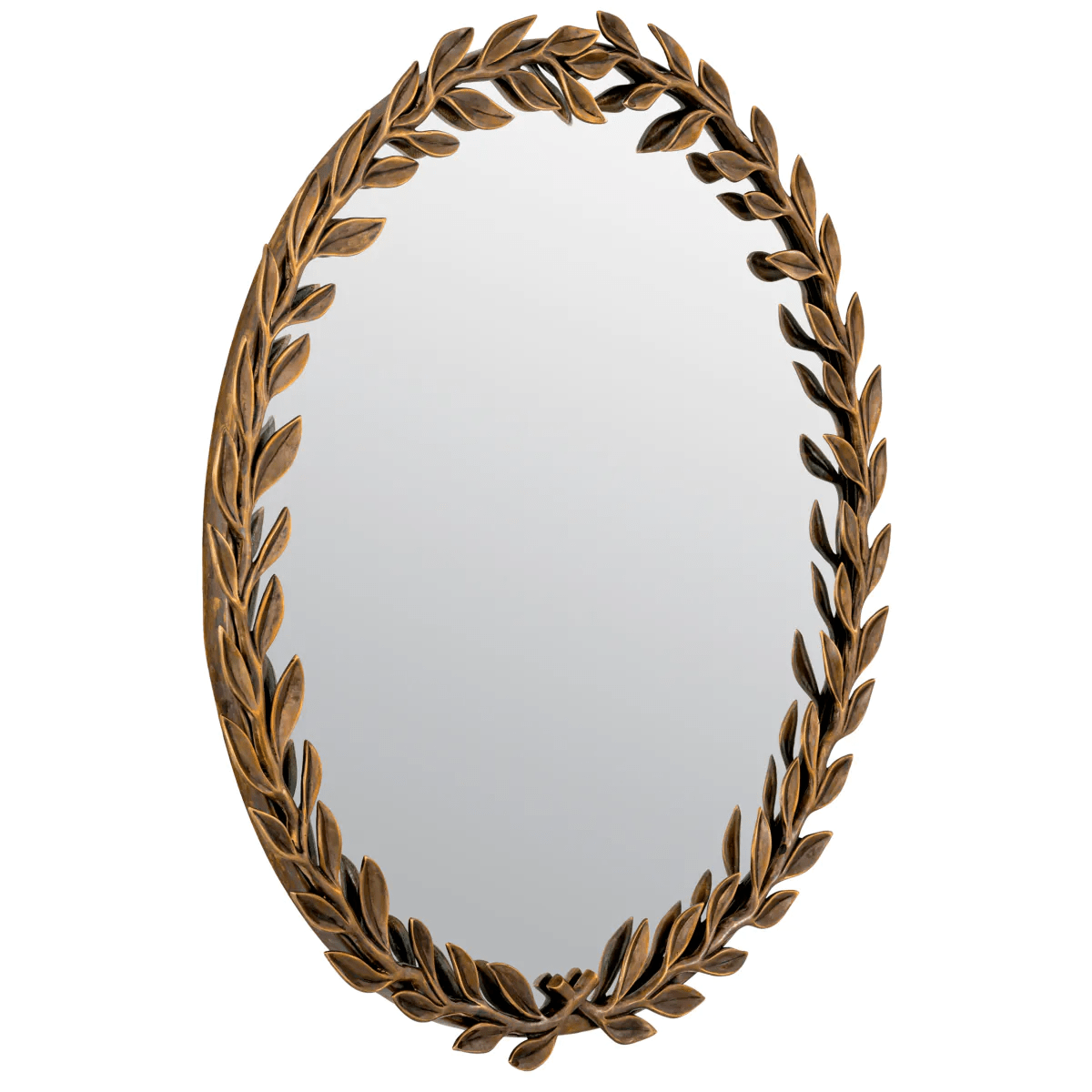 Showcasing a wreath of leaves to create a botanical look, the vintage brass Duras Mirror is a true piece of wall art. This decorative mirror is an ideal accent piece and a great solution to brighten up your space or make it appear bigger, since it helps bounce light around your room.