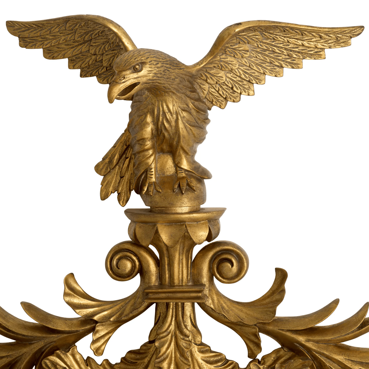 Drawing inspiration from an American girandole (1817)—a type of ornamental candleholder popular during the nation’s Federal period (1788–1825)—this mirror features an antiqued gold finish and convex mirror glass. The intricate eagle finial and candle arms reflect the decoration on the original in The Met collection, illuminating any room with timeless elegance.