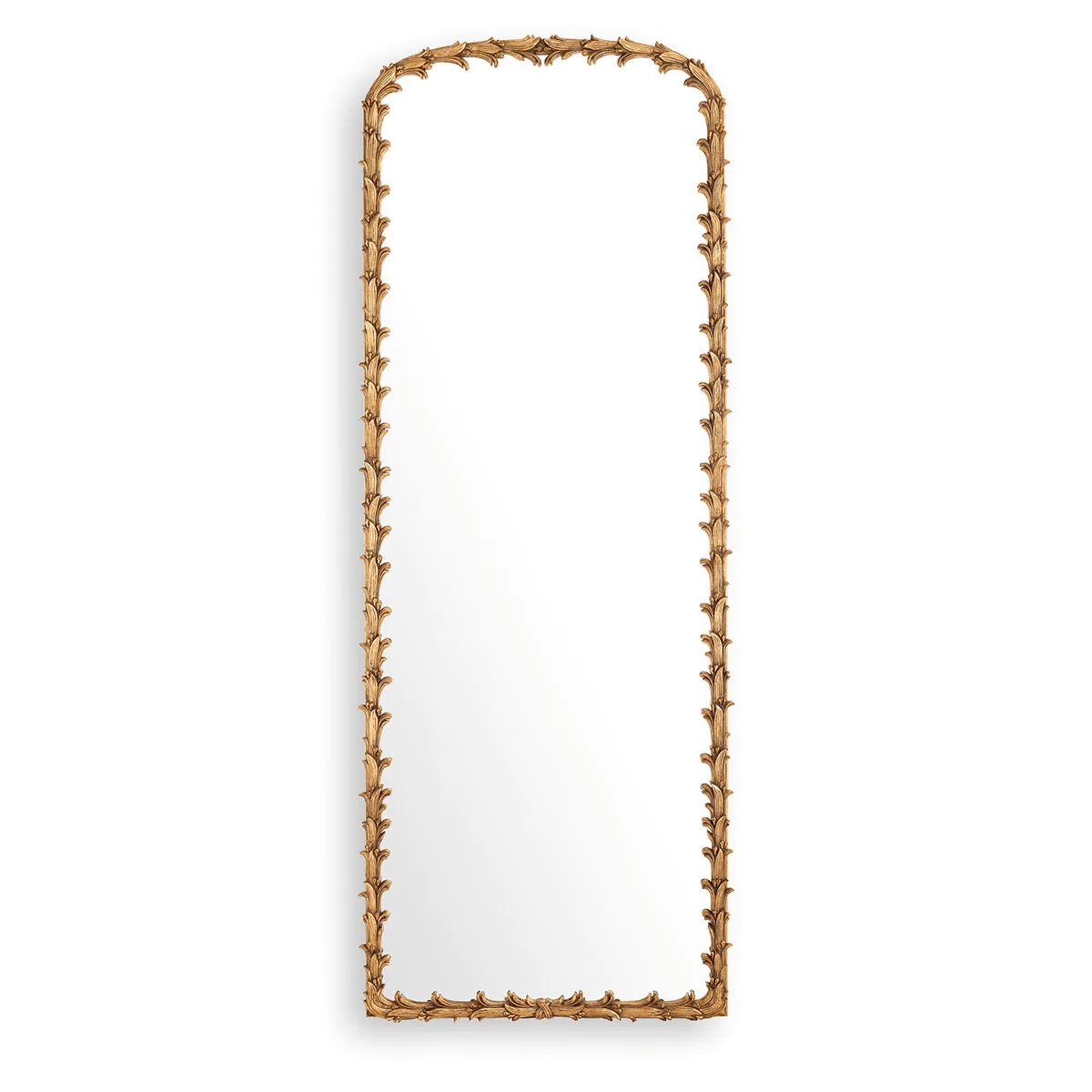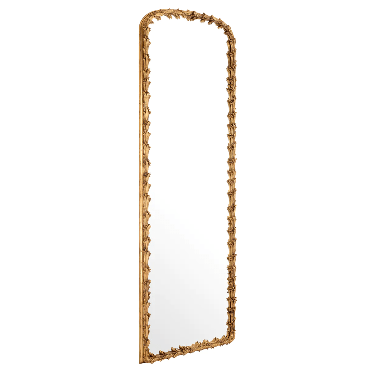 Hand carved from mahogany wood and embellished with delicate leaves, the French style gold finish frame of Mirror Guinevere L exudes natural beauty.