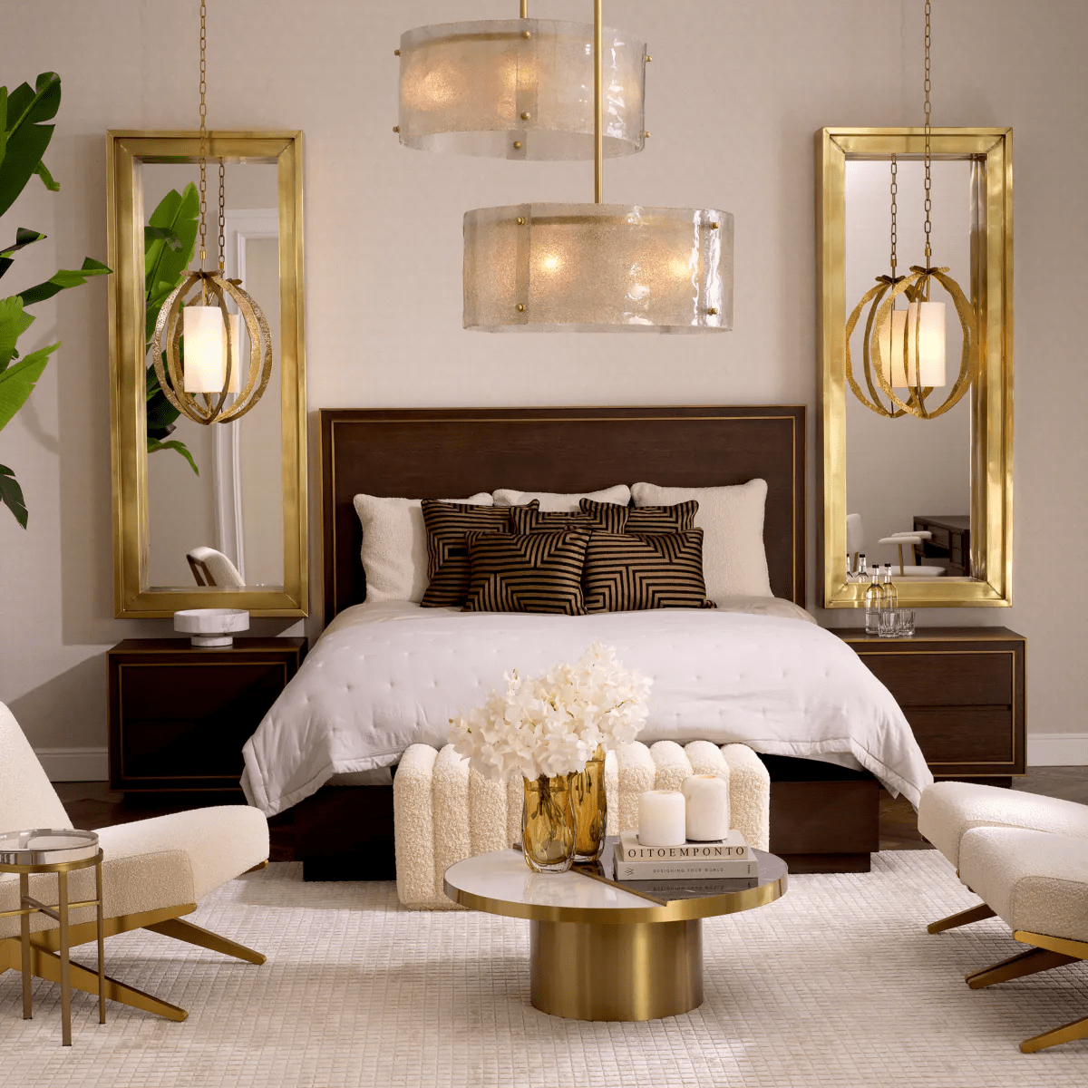 The deepened frame of this bevelled wall mirror comes in a vintage brass finish, making this item ideal for minimalist spaces or as a quiet anchorpiece in more bold interiors.