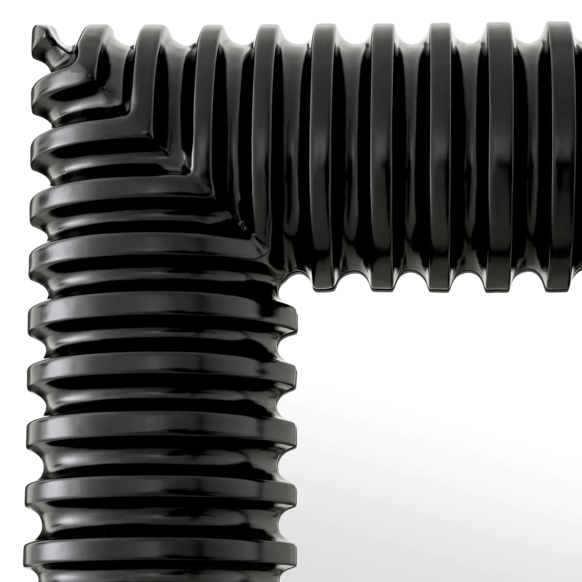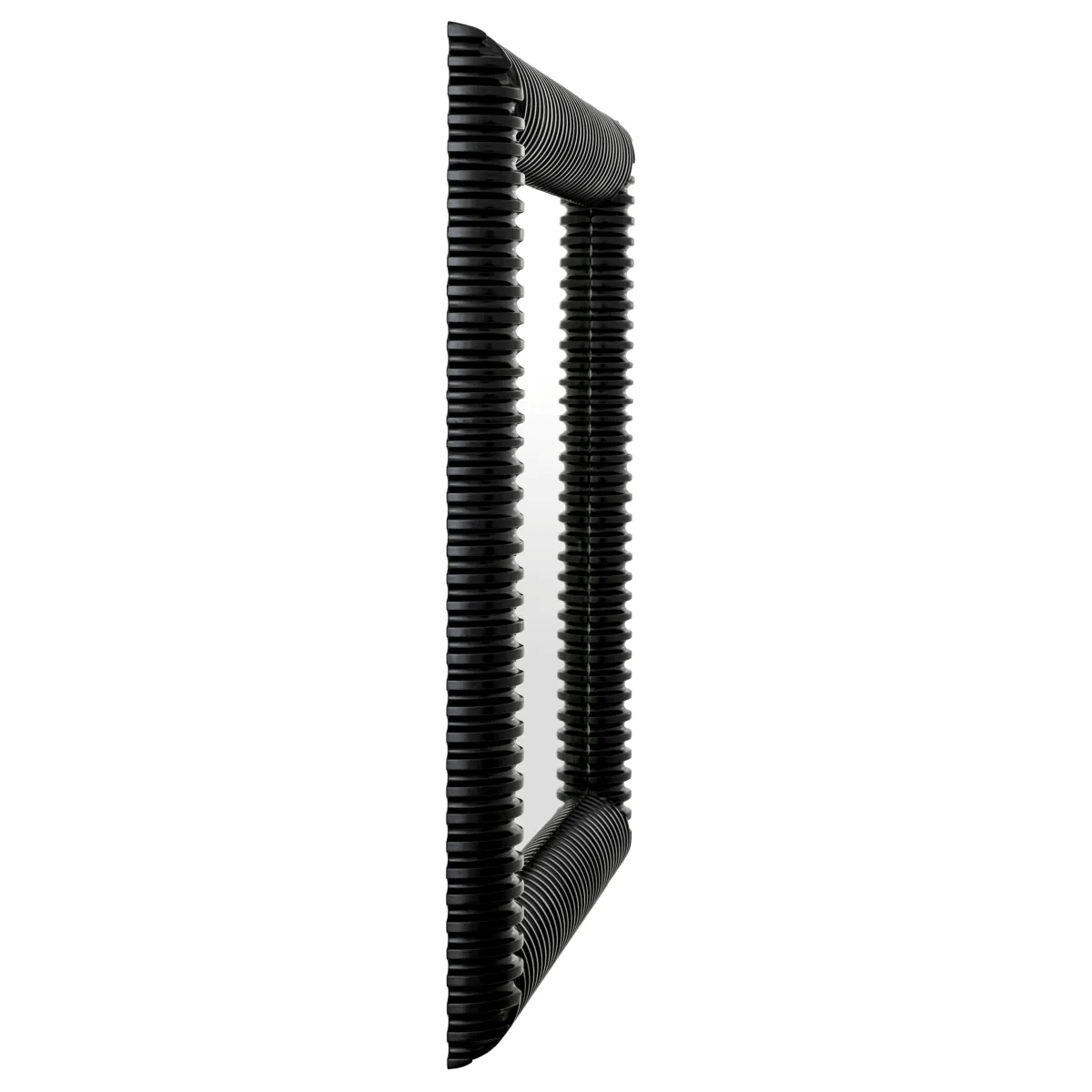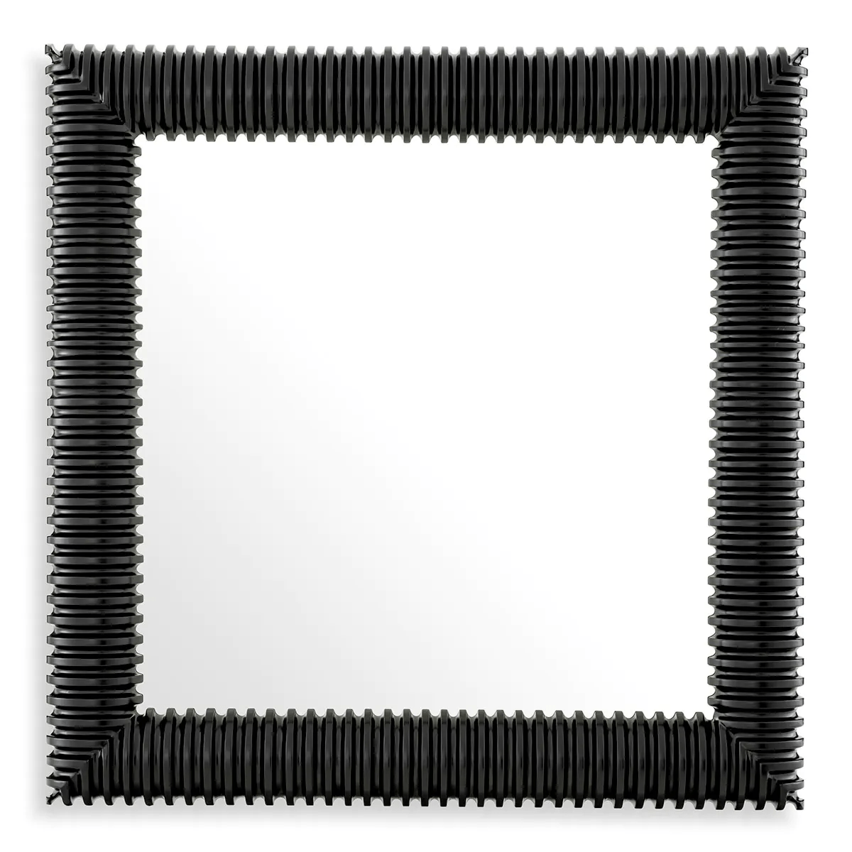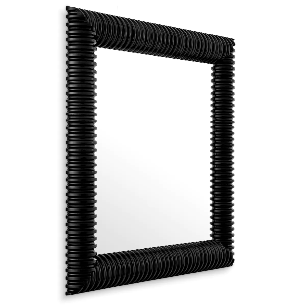 Hand-carved from solid mahogany wood and finished in black, the wide frame of our Museo Mirror showcases a row pattern in high relief.