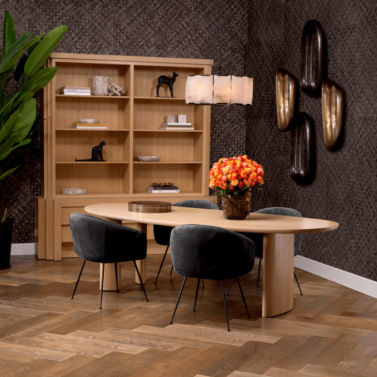 Veneer furniture is covered in a thin layer of real hardwood. Veneers are often used in high end furniture pieces and can be more costly than solid wood. Mid 20th century it became especially popular in interiors when teak wood was often used for Danish design furniture.