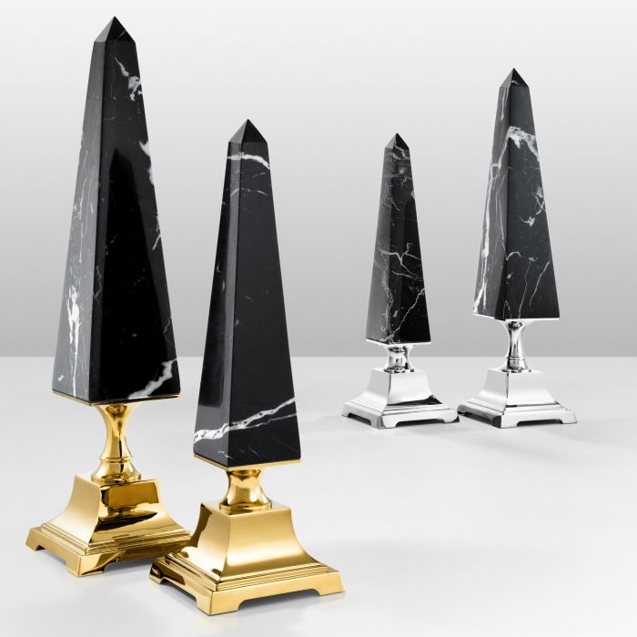Decorate your living space with the classy Layford Obelisk, featuring a gold finished base and a black marble upper part. In ancient Egypt, obelisks were placed in pairs at the entrances of temples, as a symbol of the sun god Ra, who harnesses positive energy and protection.