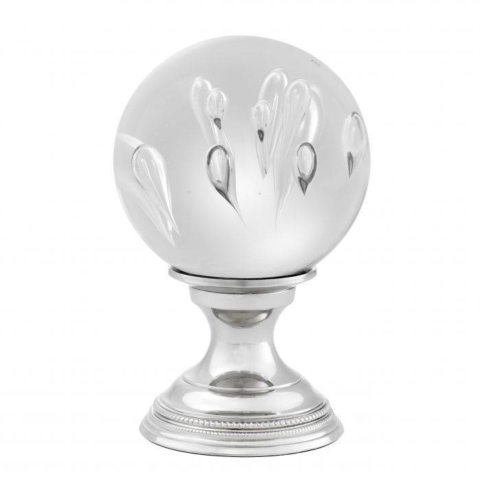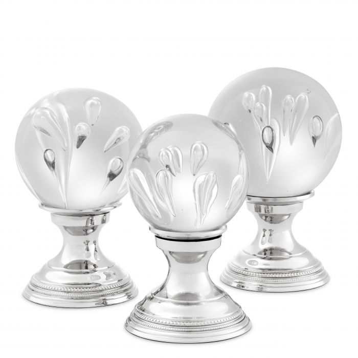 Channel elegant style into your home with this gorgeous 3-piece set of Alfred Objects on embellished stands with a nickel finish. Crafted from clear glass, each globe features air bubbles for added dimension.