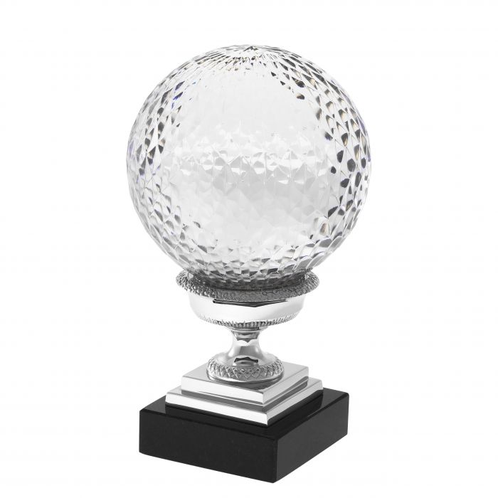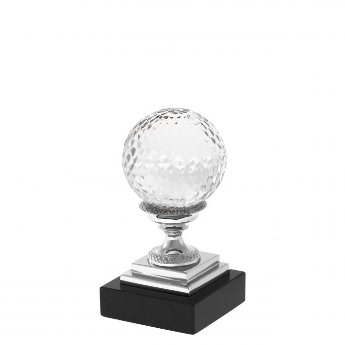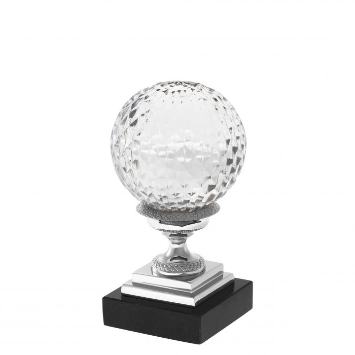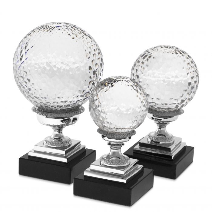Channel classic style into your home with this gorgeous 3-piece set of Divani Objects on nickel pedestals with a granite base. Crafted from hand blown clear glass, each globe features intricate details that provide textural dimension and shimmering.