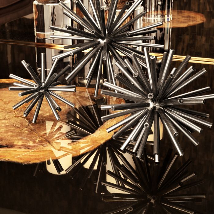 This striking Set of 3 Meteor Objects with nickel finish takes style cues from the Soviet Union’s Sputnik satellite, that inspired an era of design icons such as the Sputnik chandelier that became famous in Mid-Century Modern décors.