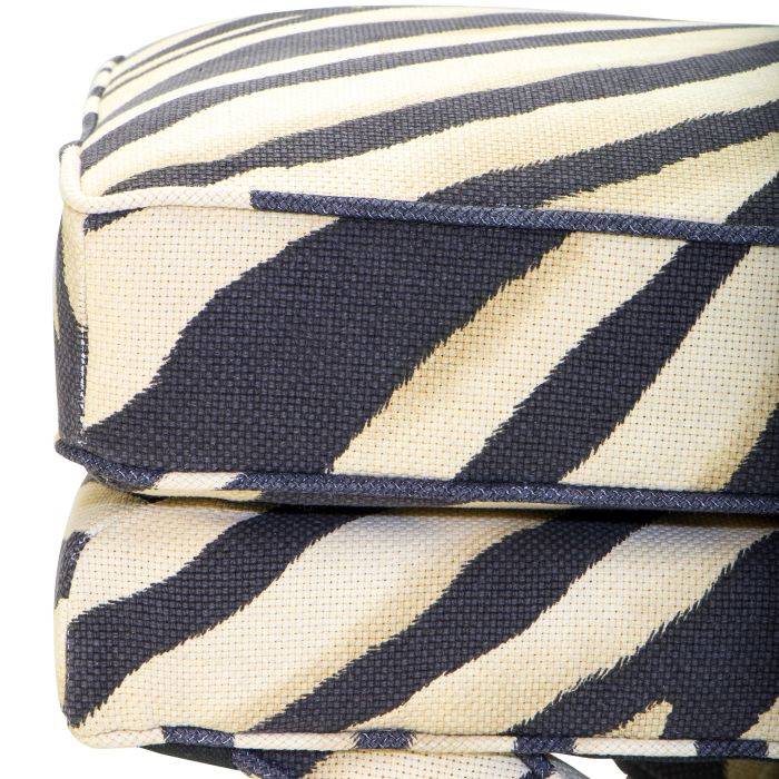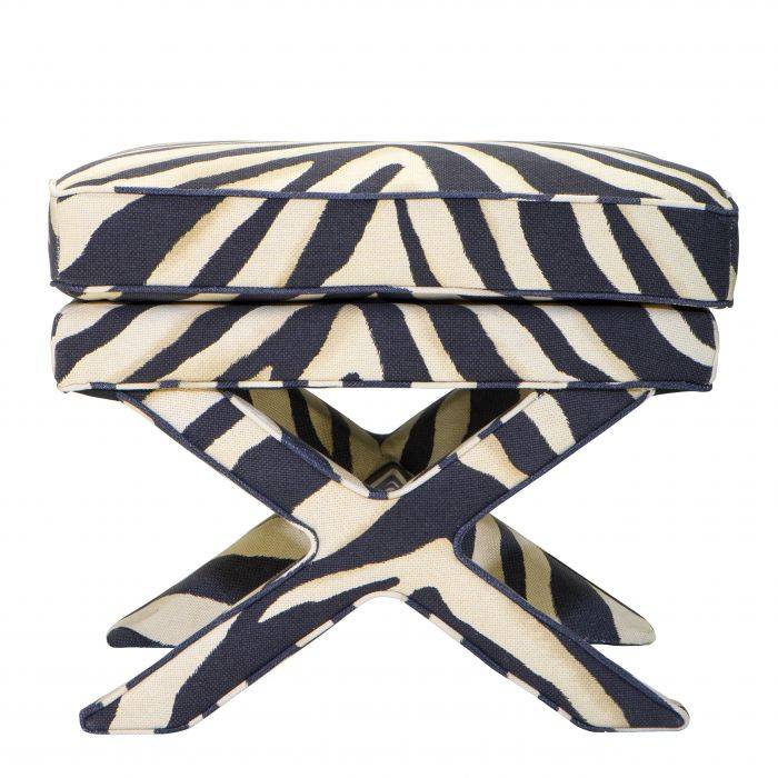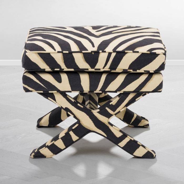 Add a trendy seating option to your lounge, bedroom or hallway, with the Cordoba Ottoman. The deep buttoned zebra print upholstered seat of this footstool rests on a stylish crossover base and features piping.