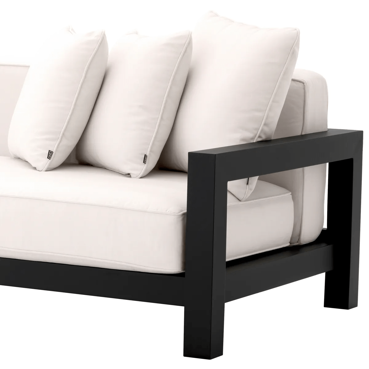 Standing out by a sleek design with simple lines, Sofa Cap-Antibes adds contemporary style to your outdoor décor. This luxurious sofa is expertly crafted from durable aluminium with a black powdercoated finish. Its seat and back cushions are upholstered in Sunbrella canvas.
