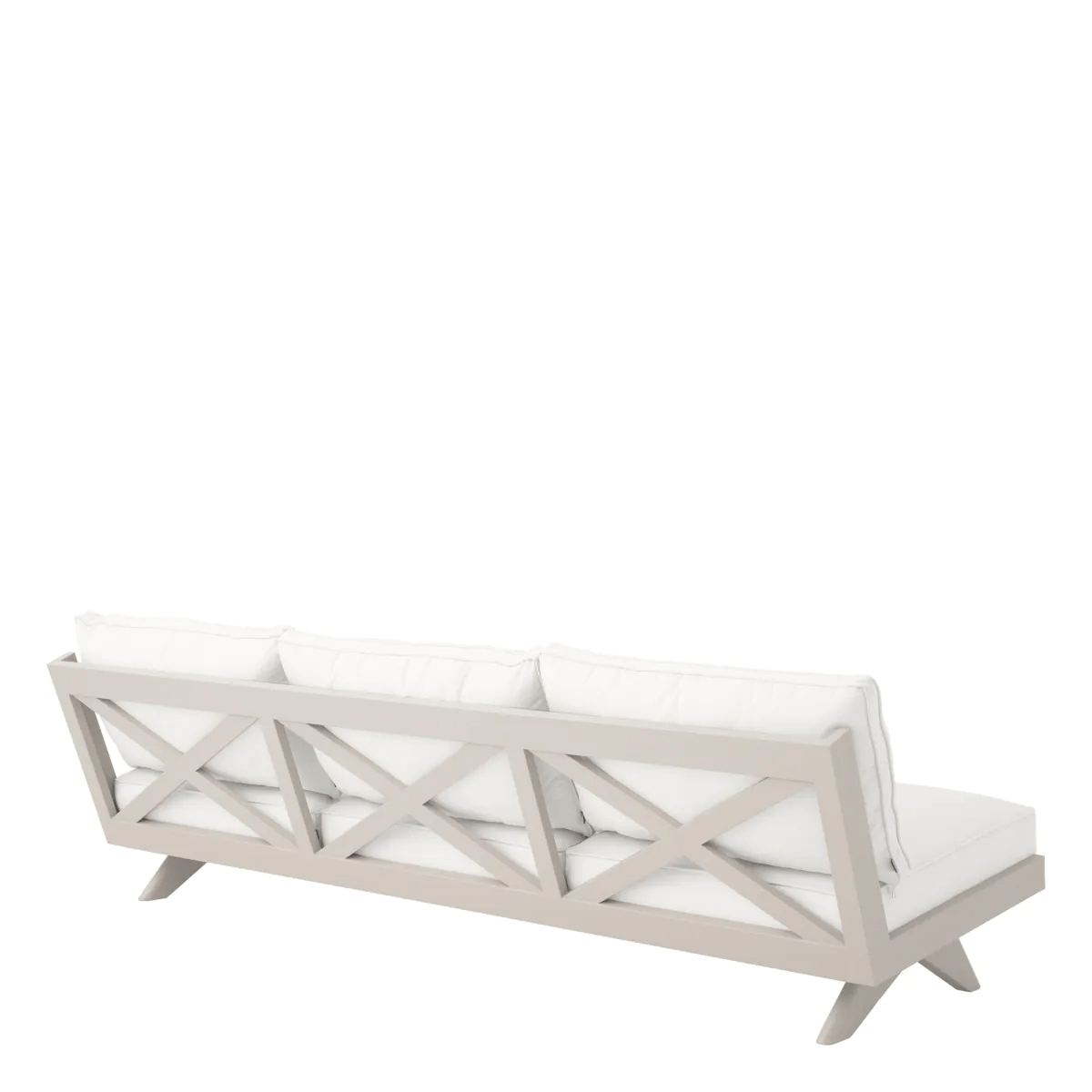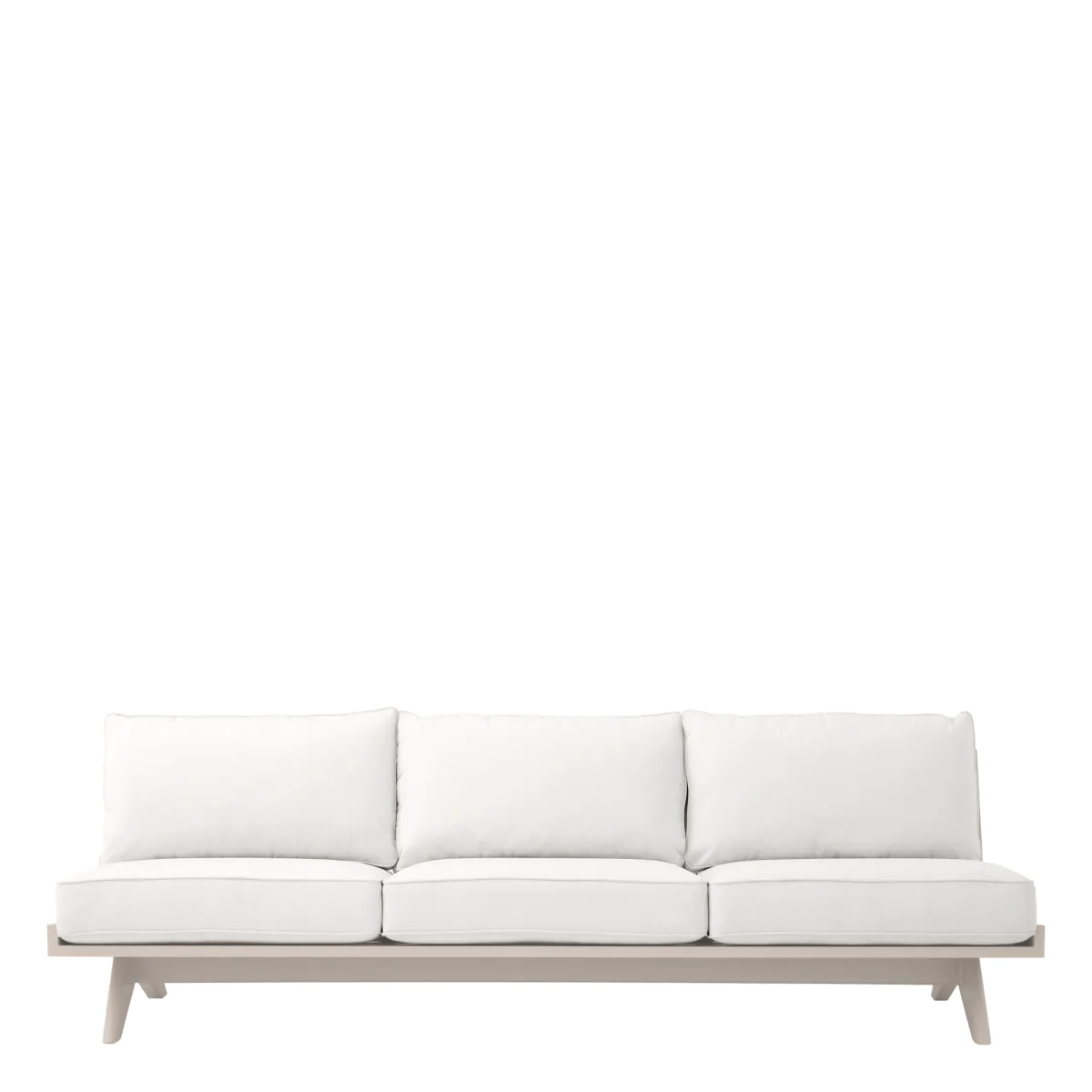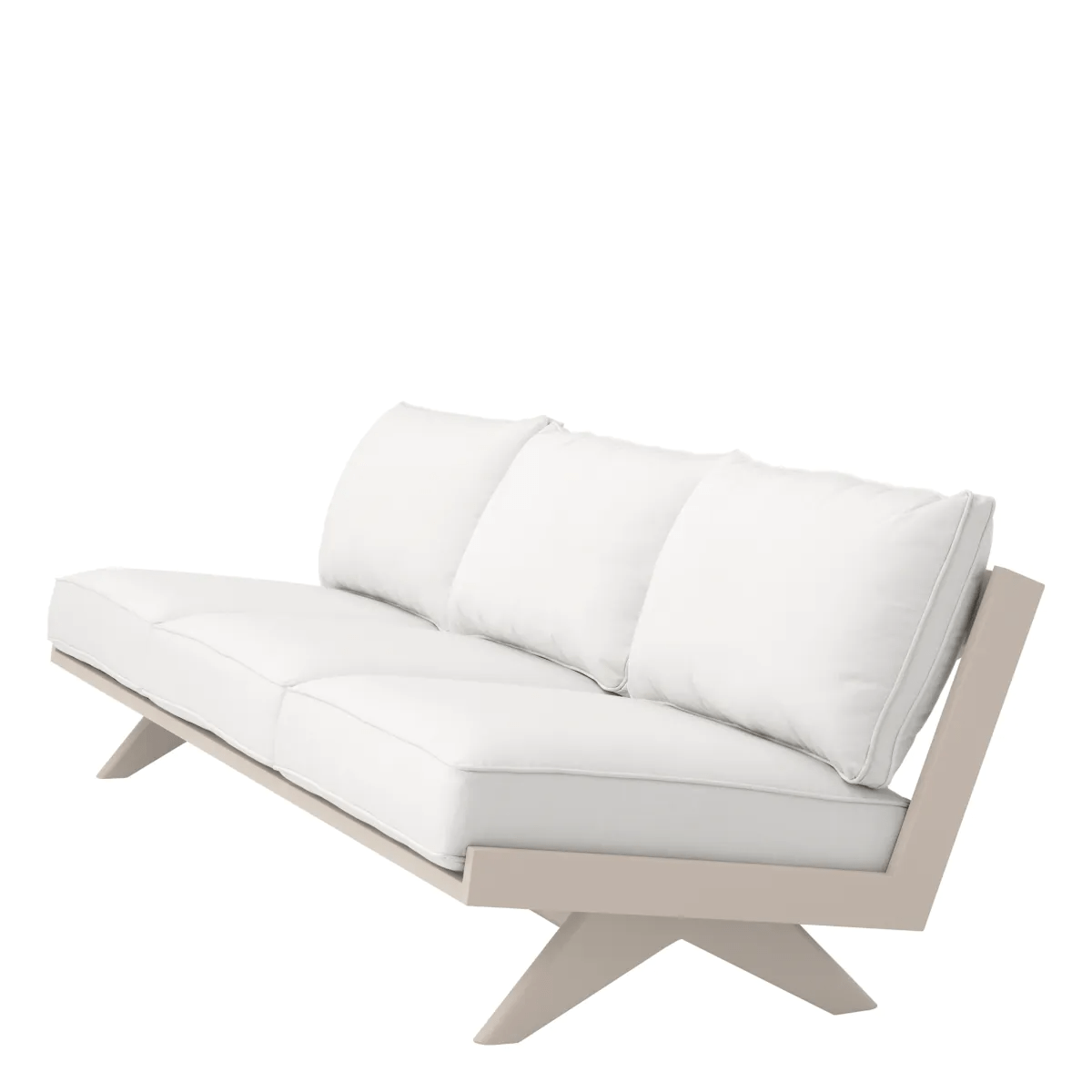 The Lomax Sofa is fitted for a variety of outdoor scenarios, ranging from beach clubs and exotic resorts to backyard patios and rooftop terraces. Minimalist yet extremely comfortable, this luxury outdoor sofa radiates a breezy and laid back feel. It has a sand coloured powdercated finish and is supplied with Sunbrella canvas cushions.