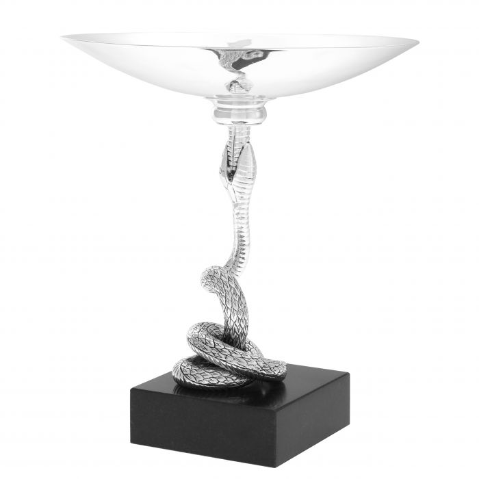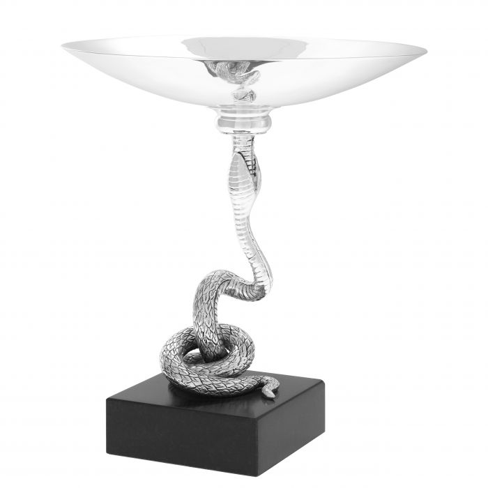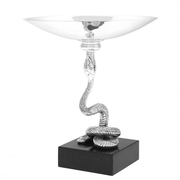 Bring grandeur to your home décor with the gorgeous Byzantium Platter. This elevated platter has an antique silver finish and features a snake on a square base of black granite.
