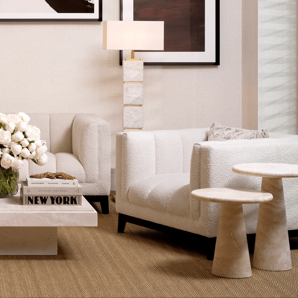 Crafted from travertine, a terrestrial limestone, this sculptural side table features a rounded top resting over a conical base. With its beautiful curving lines, it elevates the aesthetics of any setting. Pair with the small Adriana Side Table for extra dimension.