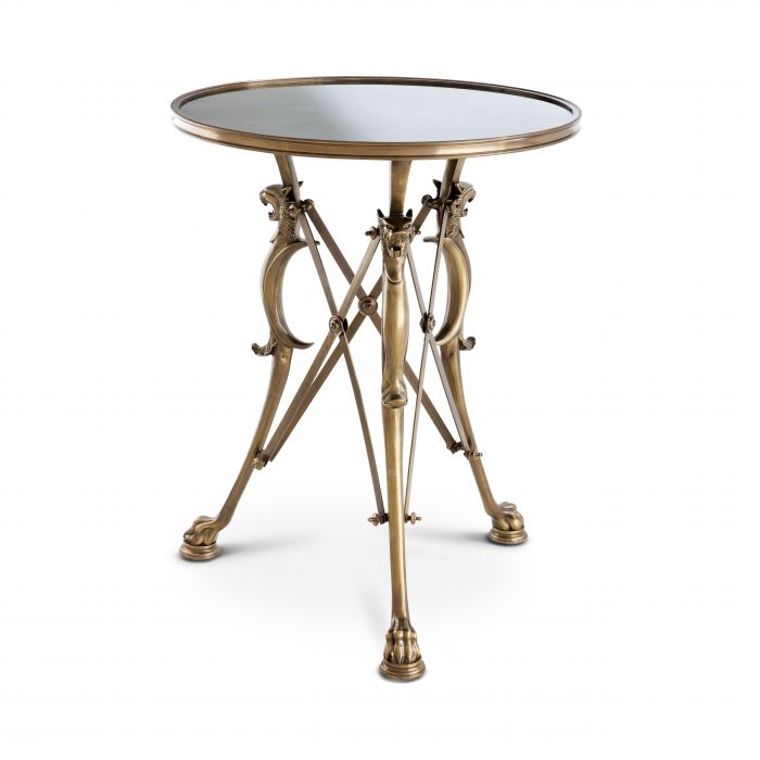 Create a sophisticated chic atmosphere in your home with the Belfort Side Table. Mythical tiger heads and paws adorn the base of this gorgeous antique brass side table with antique mirror glass tabletop. A luxury asset for your classic interior scheme.