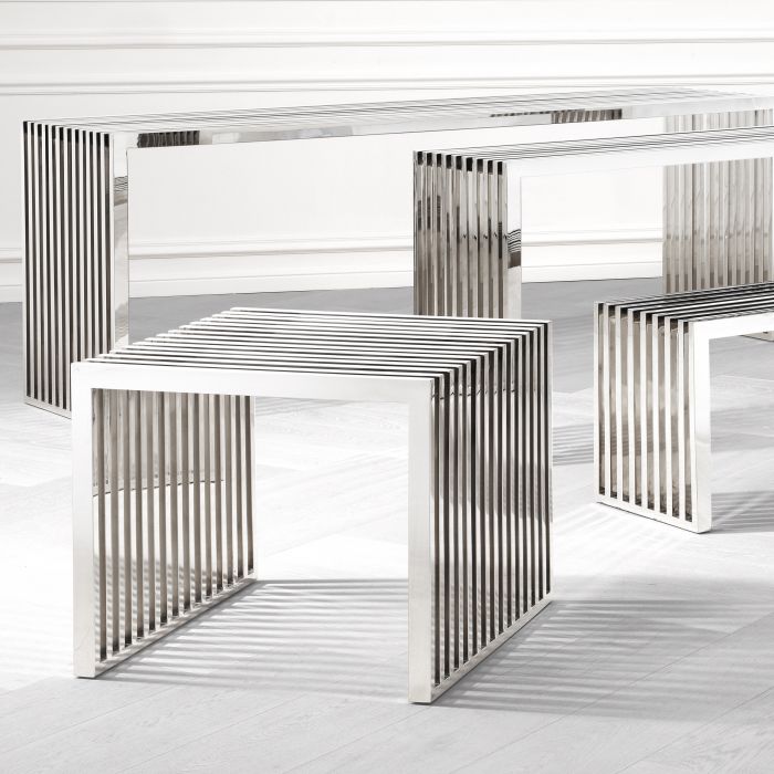 Characterised by an architectural design and a slanted line pattern, the sleek and shiny Carlisle Side Table is a fine addition to modern and contemporary décors. It is crafted from stainless steel and features a polished finish.ICONIC EYE-CATCHER Inspired by New Objectivity or New Pragmatism (Dutch and German modernist architecture from the 1920s and 1930s), the Eichholtz Carlisle series is characterised by angular shapes and a design that is free of ornamentation and decoration. Mix with design lighting and furniture from the Eichholtz collection for a sleek, distinctive interior style.