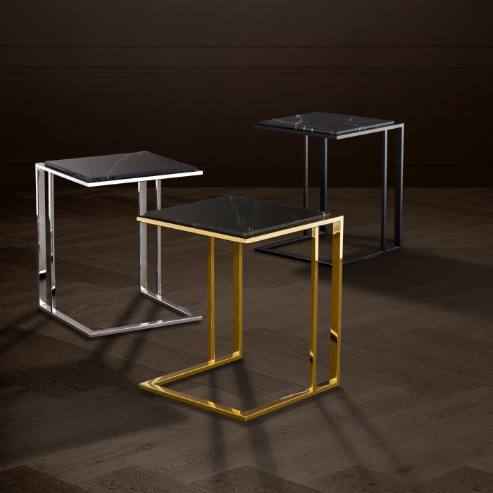 The Cocktail Side Table comprises a sleek bronze finished frame and an elegant black marble table top with white veins. This is the ideal accent table for your living room or dining area where it will add contemporary and sophisticated style.