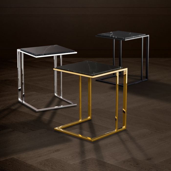 The Cocktail Side Table comprises a sleek gold finished frame and an elegant black marble table top. This is the ideal accent table for your living room or dining area where it will add contemporary and sophisticated style.