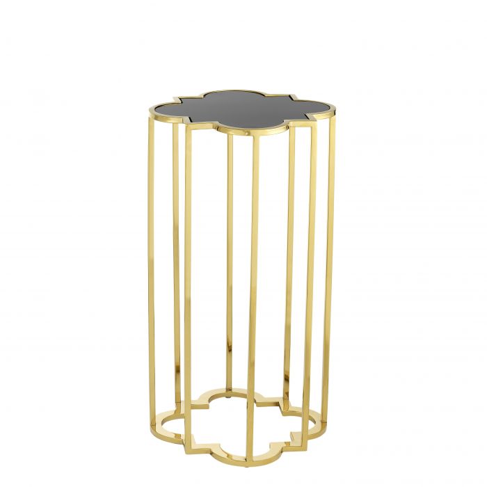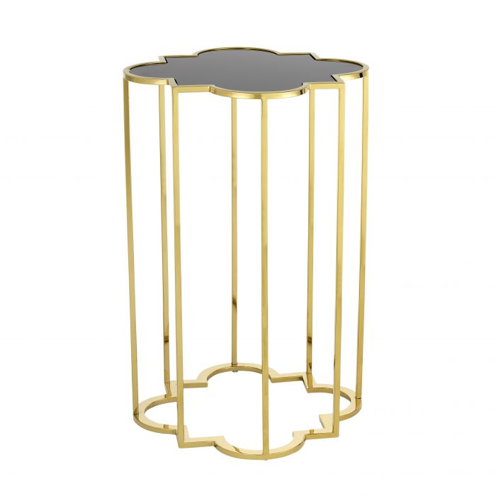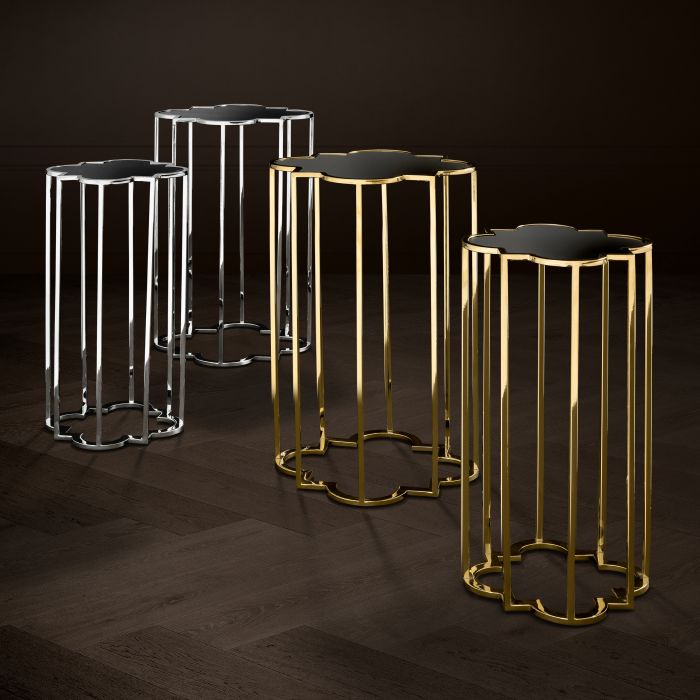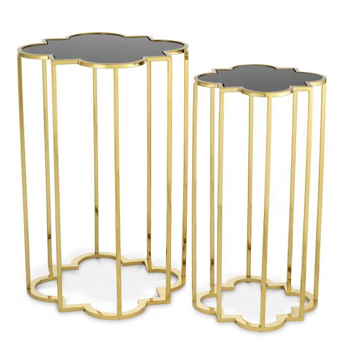 The beautiful set of 2 Concentric Side Table consists of two eye-catching side tables with gold finish and black glass tabletops.