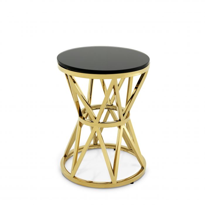 With its airy, metal base dressed up in gold finish and shiny black glass tabletop, the Domingo S Side Table is high style in contemporary interior design schemes.