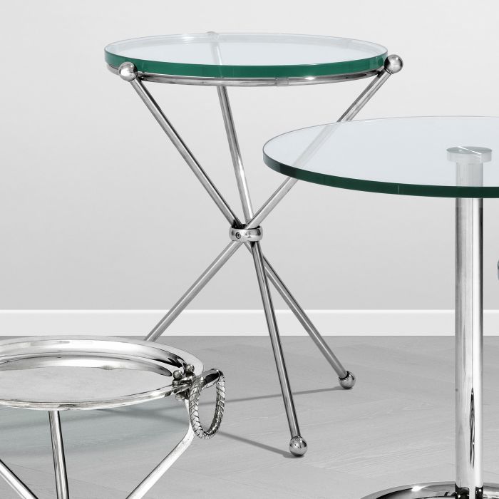 Lend a modern touch to your living area with the sleek Donna Side Table. This magnificent end table with round clear glass tabletop is skillfully crafted from polished stainless steel to grant a luxurious appearance to your interior.