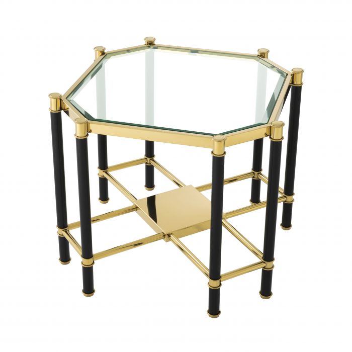 Anchor your favourite aesthetic in luxury style with the glamorous Florence Side Table. This art deco style furniture piece features a clean-lined symmetrical frame with glossy gold and matte black finish and a clear glass tabletop. A TOUCH OF GATSBY GLAMOURThe Roaring Twenties are entirely in vogue again, so inject some Gatsby glitz and glamour in your home décor. Jazz up your interior with the Art Deco style pieces from the gorgeous Florence Series. This luxury furniture series perfectly captures the opulence of the world of the young millionaire Jay Gatsby, the title character of F. Scott Fitzgeralds literary classic.