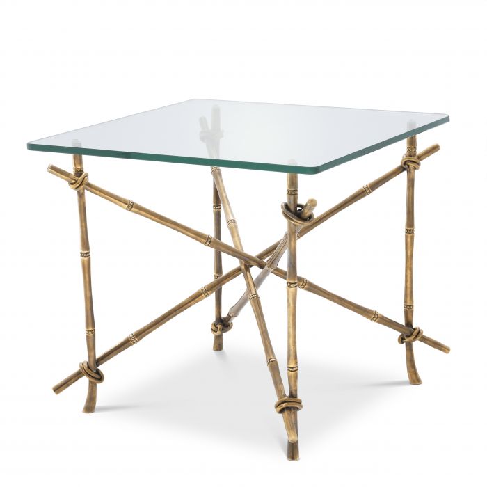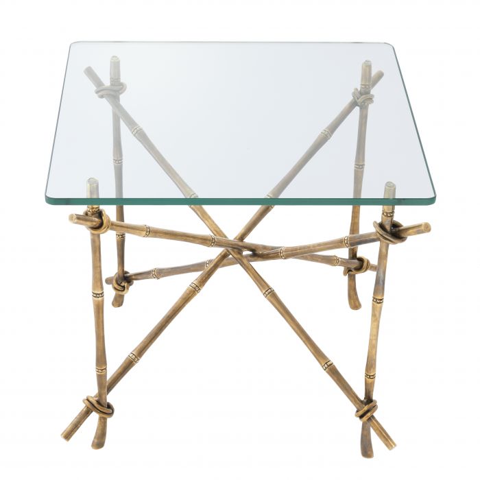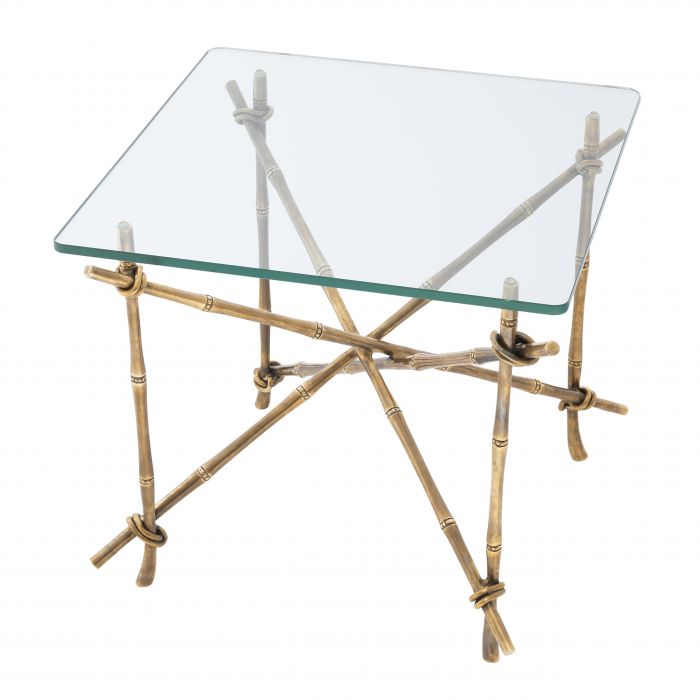 Bring Hawaiian style to your home décor with the Kahala Side Table. Pairing a natural look with vintage glamour, this gorgeous coffee table features a fascinating bamboo-like frame in a vintage brass finish and a tabletop of bevelled clear glass.