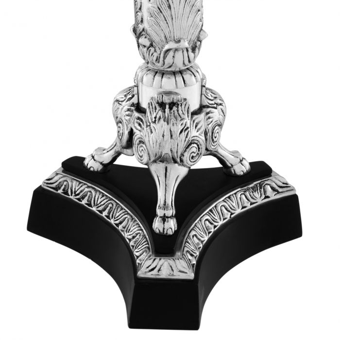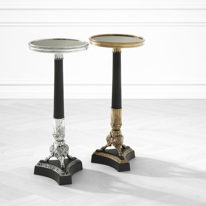 Bring classic sophistication to your home interior with the Lasalle Side Table. Taking style cues from 19th Century French Empire furniture, this round ornate silver plated end table comprises a black base and ribbed stem, and a black granite tabletop.