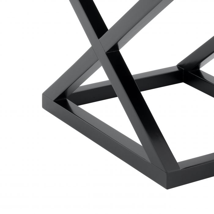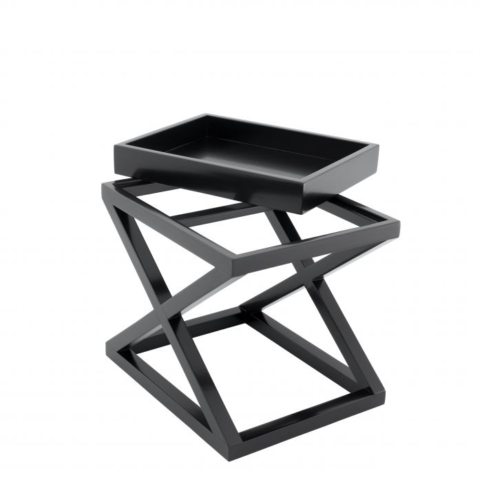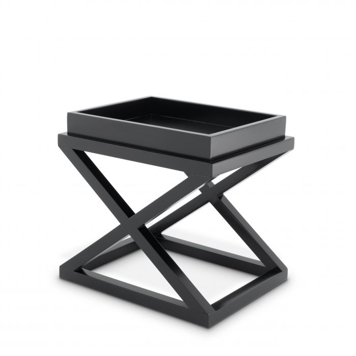 Made of birch wood with a black finish, the McArthur Side Table comprises a crossover frame on a rectangular base plate and a removable tray with raised edges.
