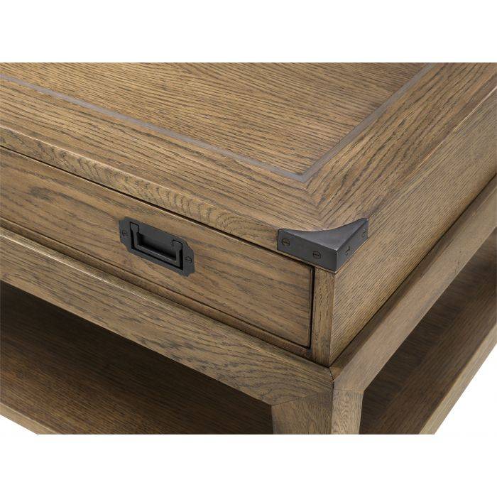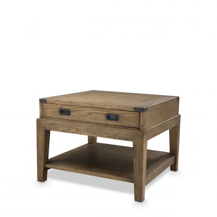 The Military Side Table is suitable for both classic and contemporary interiors. A simple yet sturdy design in modern smoked oak with gunmetal hardware gives this side table timeless appeal.
