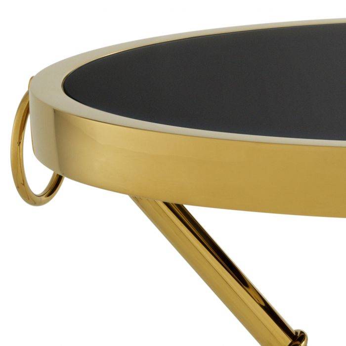Add a touch of restrained glamour to your home decor with the Omni Side Table. Inspired by oriental boutique hotels, this luxury round side table features a faux bamboo tripod base with gold finish and a black glass tabletop.