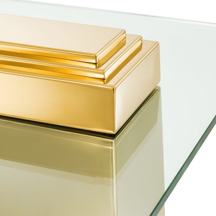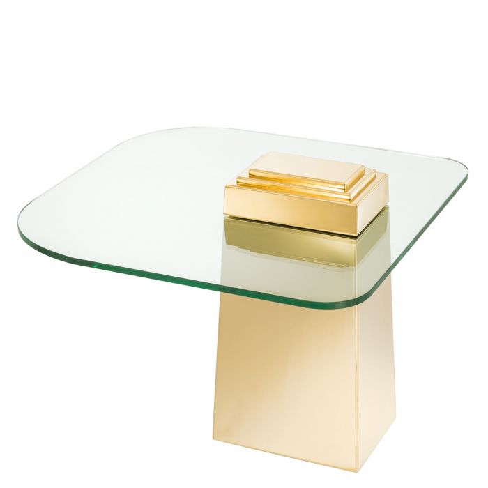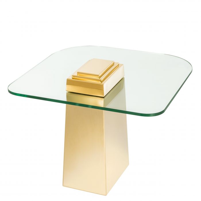 Add a splash of urban glamour to your home décor with the uniquely shaped Orient Side Table. Comprising an eccentric tapered base with gold finish and a square clear glass tabletop with rounded edges, it’s a real eye catching piece of furniture.