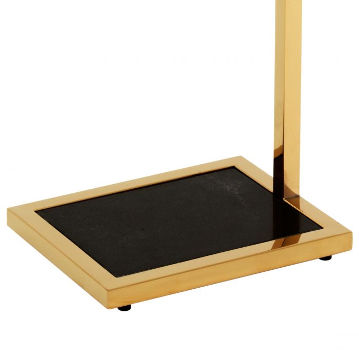 Comprising a clean-lined gold finished frame with granite base and black glass top, the Paladin Side Table will elevate the style of your interior.