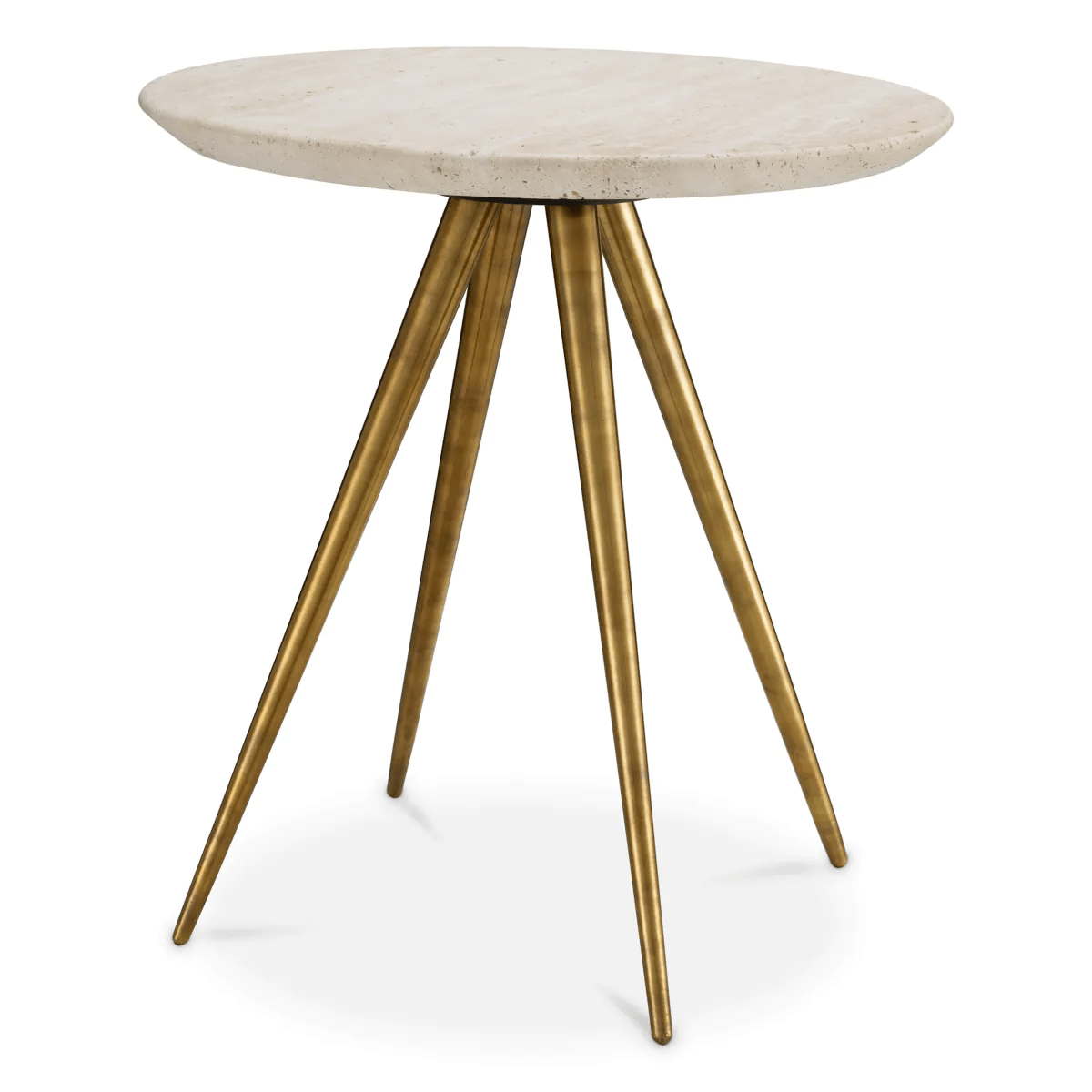 Expertly artisan-crafted with a vintage brass finish, this piece is accentuated by the natural elegance of travertine marble. The Side Table Ranco seamlessly blends into any interior design, offering timeless craftsmanship that complements both modern and classic decor.