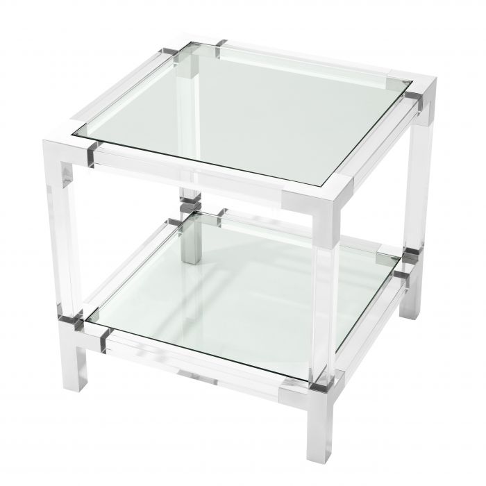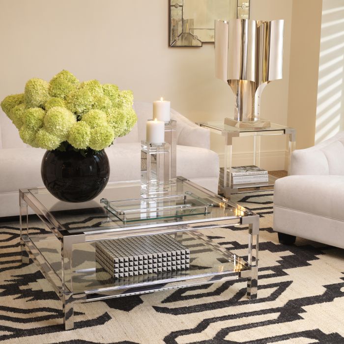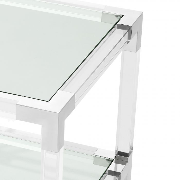Side Table Royalton features two clear glass table surfaces that run parallel to clear acrylic rods. Corners and legs of polished stainless steel complete the modern aesthetic. CLEAN LINES WITH BAUHAUS ALLUREEnjoy the Bauhaus designer appeal of the Eichholtz Royalton series. Let these elements add a modern touch to your hallway, living room or bedroom. Combine with luxury lighting and accessories of the Eichholtz collection for a contemporary interior style.