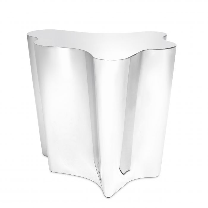 Characterised by its playful inkblot shape, the polished stainless steel Sceptre Side Table will blend beautifully with an eclectic or modern décor.