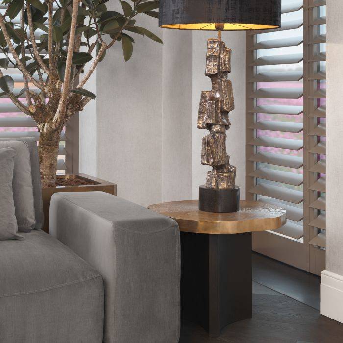 The irregular outline of the table and the structure of wood grains give a unique appearance to the Thousand Oaks Side Table. Featuring a wooden tabletop with a brass finish and a black base, this distinctive side tables is suitable for a variety of interior styles and colour schemes.
