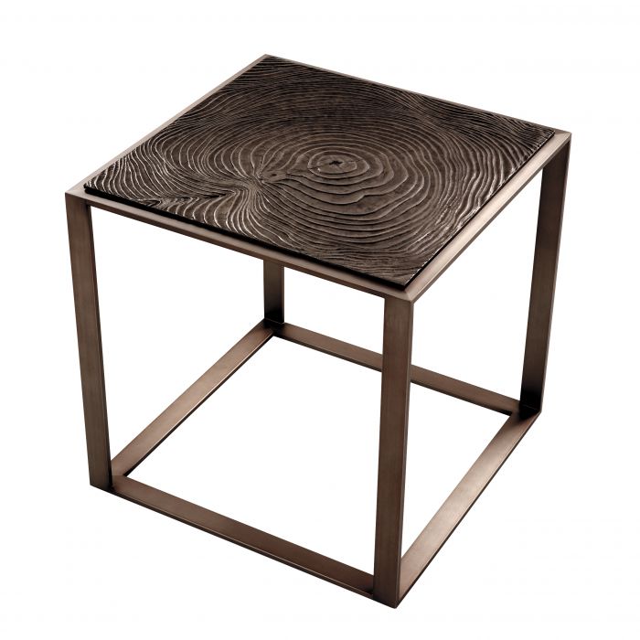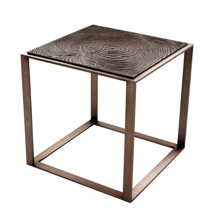 Anchor any living space in effortless style with the stunning Zino Side Table, featuring a tabletop with wood grain relief and a geometric base with light bronze finish. Restrained yet brimming with style, this attractive side table is characterised by a sleek design that breaths a Mid-Century Modern aesthetic.
