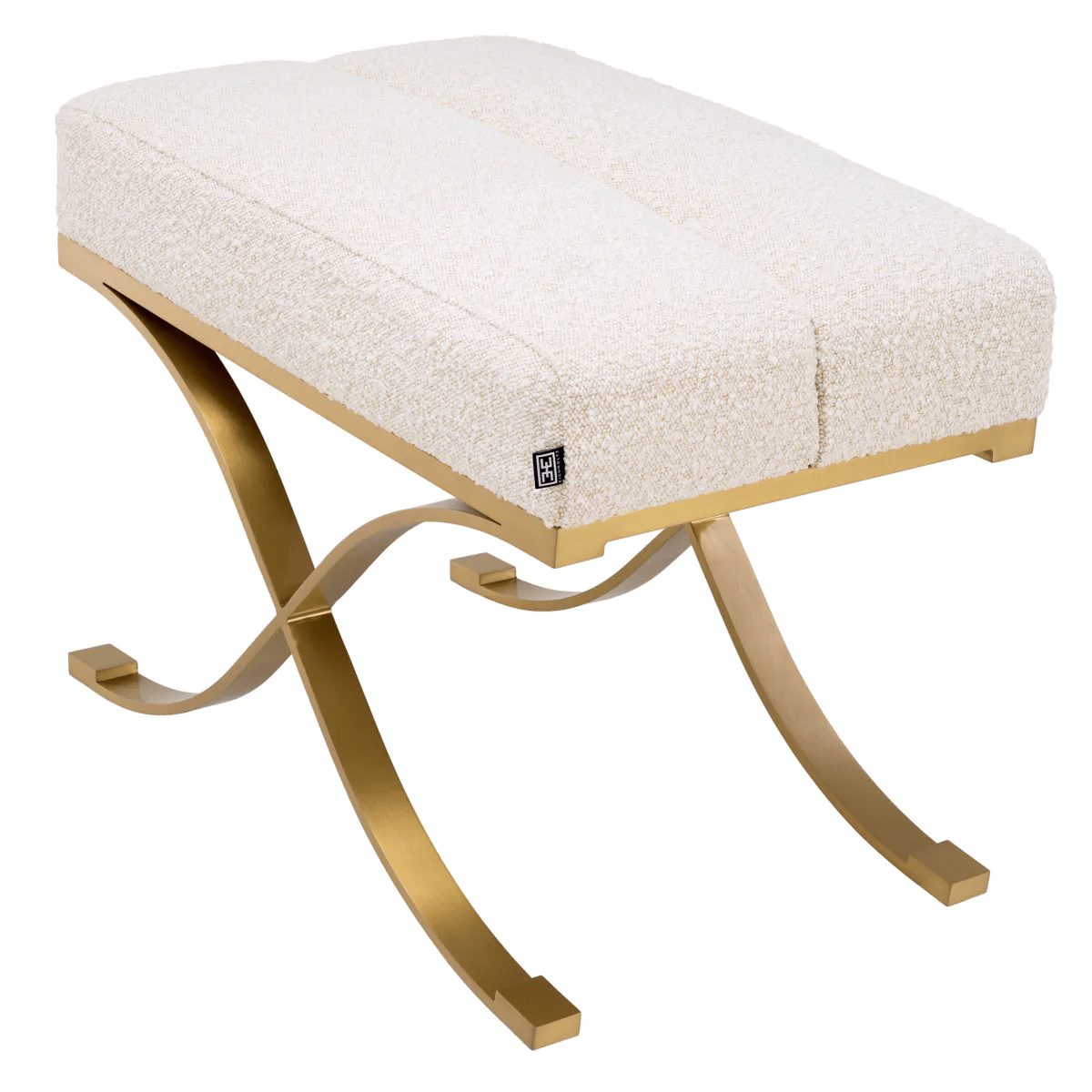 Provided with a brushed brass finish, Stool Adonia is carefully upholstered and presented in bouclé cream for an effortless complement to your design scheme. Its elegant design matches a variety of classic and contemporary interior styles.
