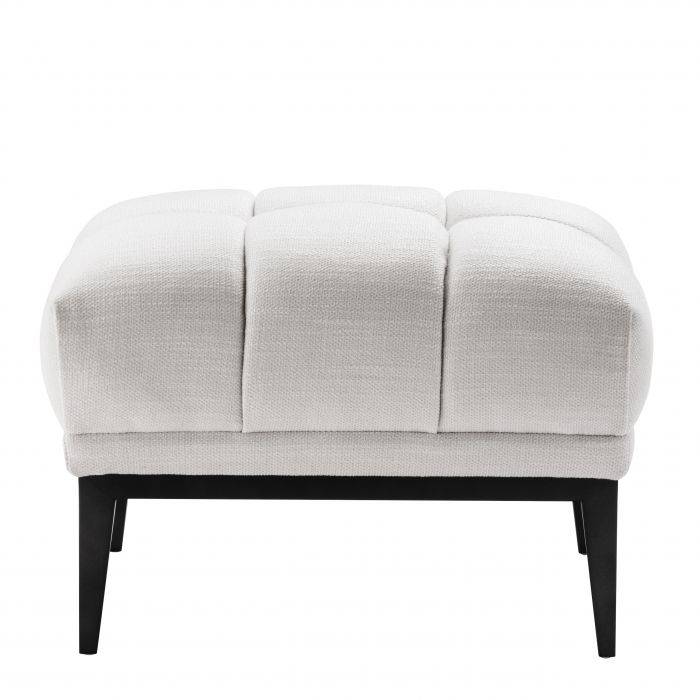 Invite the glamour and luxury of boutique hotels into your home with the Aurelio Stool. This stylish contemporary footstool exudes timeless appeal. With its ultra-padded Avalon white upholstery and tapered black legs it adds sophistication to any interior space.