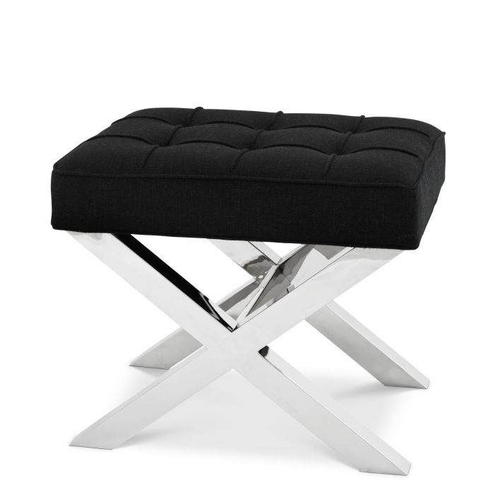 The sleek and chic Beekman Place Stool features a seat with Panama black upholstery and button detailing and a stylish crossover base of polished stainless steel.CLASSIC DESIGN, MODERN LOOKProvide a comfortable seating option in your lounge interior, bedroom or hallway, with the Eichholtz Beekman series. Combine with luxury lighting and furniture from the Eichholtz collection for a an exquisite classic or contemporary designer style.